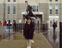 荒天のため飛行機は少し遅れ、搭乗してからも強風のための滑走路変更でさらに遅れる。翼の真横の窓側の席から見える光景は、なんだかトワイライト・ゾーンそのものだった。でも、機内はガラガラで快適。無事、シカゴ着・・・しかし、ここまで来ても雨。おまけに、乗り換えついでのシカゴ一日観光の土曜日はナント雪・・・! う〜ん。寒い・・・。結局、楽しみにしていたシアーズタワーも上ったところで何も見えないので行かず、シカゴ名物の建築物も霞んでいる。寒いことは十分予想していたが、これにはすっかりやられてしまった。