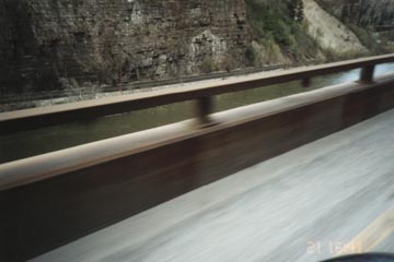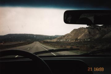 この道、結構うねってるのに、制限速度75マイルはないやろ。日本だったら30キロだよ。この辺を通ったのが明るい時間で本当に良かった。